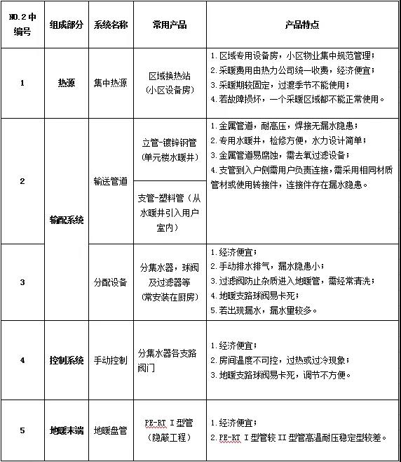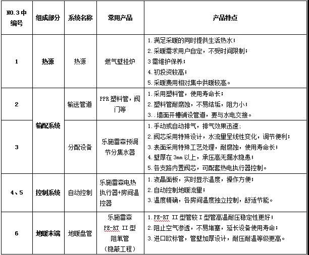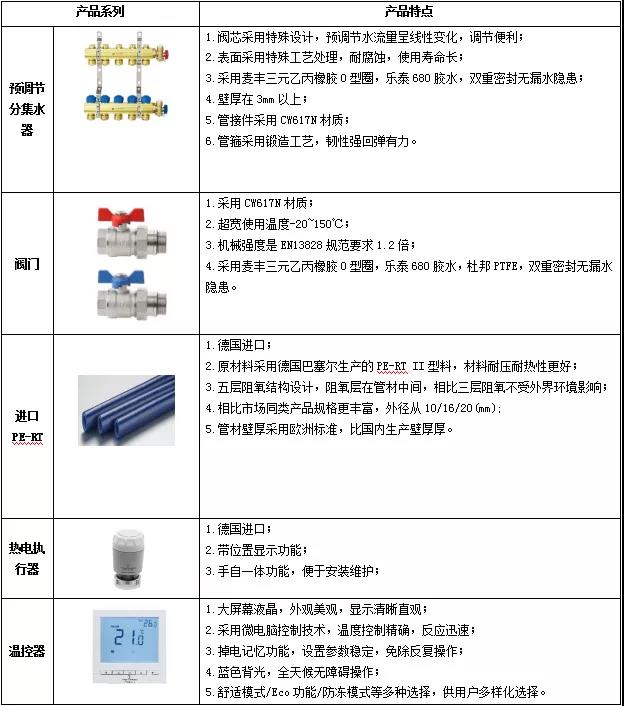 舒适型地暖系统常用产品如下表:
