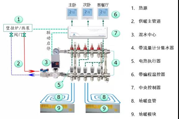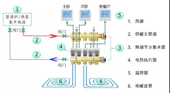 舒适型地暖系统图如下图,该方案多见于分户式地暖系统。