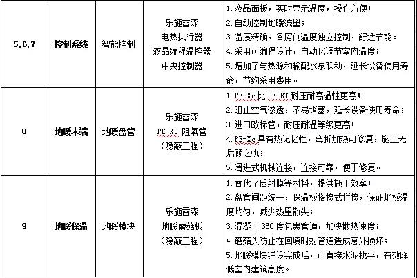 舒适型地暖系统应用到乐施雷森产品的具体特点如下: